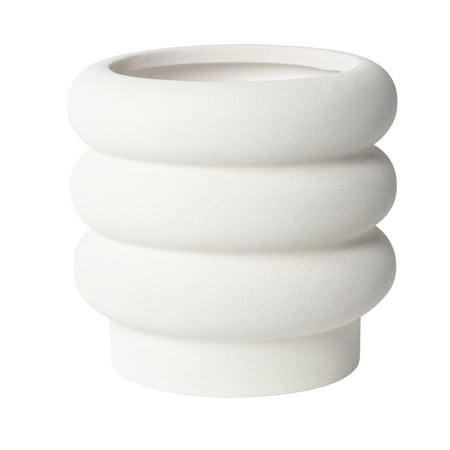 Bring modern flair and natural beauty to your living room, kitchen, or any other indoor space with the Better Homes & Gardens 6.53”D x 6.2”H Round Ceramic Bubble Planter, White. This ceramic pot’s unique 3-ring bubble silhouette makes a statement that complements contemporary décor perfectly. A durable, matte white finish provides a clean look to house ferns, succulents, and other small houseplants. The planter includes a drainage plug that allows for easy watering. Add the Better Homes & Gardens 6.53”D x 6.2”H Round Ceramic Bubble Planter to any room for a hint of greenery and a splash of style.