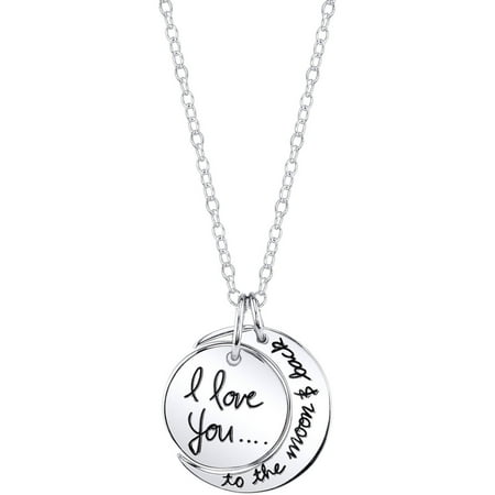 No guesswork here—this dazzling necklace lets everyone know exactly how you feel. Sterling silver charm necklace reads "I Love You To The Moon and Back." Whether it's for your mother, wife, sister, daughter or friend, you can't go wrong with a classic gift from Believe by Brilliance. Comes on a thoughtfully messaged Believe by Brilliance keepsake card, making it the perfect gift! This jewelry piece comes on a thoughtfully messaged Believe by Brilliance keepsake card, ready for gifting! You might just love it so much that you purchase another to enjoy yourself!