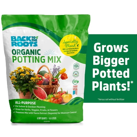 Back to the Roots Natural & Organic All-Purpose Potting Mix, 6 dry quarts for indoor and outdoor gardens is ideal for your herbs, fruits, veggies, and flowers. Under every great garden is even better soil! This potting mix combines natural & Organic all-purpose plant food, root-boosting Mycorrhizae, nutrient-rich earthworm castings, moisture-balancing Yucca extract, and pH-balancing Dolomitic limestone. Back to the Roots is on a mission to reconnect every family & kid back to where food comes from by helping them experience the magic of growing it themselves. We hope you enjoy our organic gardening products and join us on our journey to get America growing!