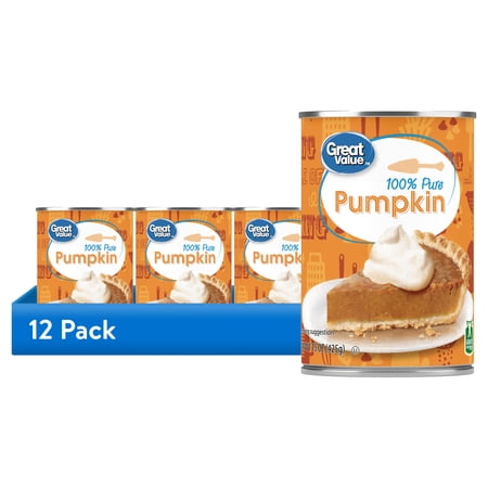 Bake the perfect pumpkin pies with Great Value 100% Pure Pumpkin. This canned pumpkin with no added sugar has a creamy texture, classic orange color, and pure pumpkin taste. This pure pumpkin is perfect for adding to those pumpkin-flavored specialties on your menu. Make traditional pumpkin pie or include this pure pumpkin to make pumpkin waffles, pancakes, cheesecakes, muffins, and breads. You can even try making a warm, creamy pumpkin soup or add additional flavor to some homemade chili. Add the perfect pumpkin flavor to your seasonal menu with Great Value 100% Pure Pumpkin. Great Value products provide families with affordable, high-quality grocery and household consumable options. With our wide range of product categories spanning grocery and household consumables, we offer you a variety of products for your family's needs. Our products are conveniently available online and in Walmart stores nationwide, allowing you to stock up and save money at the same time.