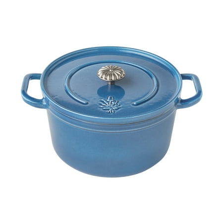 Bring function and farmhouse style to your kitchen with The Pioneer Woman 5-Quart Enamel Cast Iron Dutch Oven. Designed for durability and eye-catching appeal, this versatile pot is perfect for simmering soups, braising meats, baking casseroles, and more. It includes a bonus interchangeable bakelite knob and adds a charming touch whether you're cooking or serving.