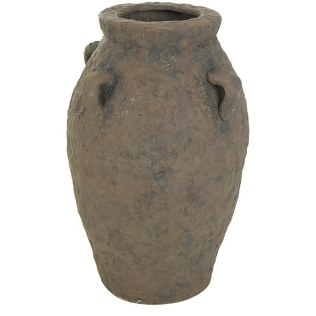 DecMode 15" Handmade Textured Dark Brown Ceramic Vase with Four Handles is a unique addition to your stylish home. The dark brown centerpiece vase is perfect for living rooms or dining tables. Designed with felt or rubber stoppers at the base that prevent scratching furniture and table tops, as well as sliding around. This item ships in 1 carton. Stoneware vase makes a great gift for any occasion. Due to the handmade nature of this item, no two will be alike, there will be slight differences in shape, size, and color. Suitable for indoor use only. This item ships fully assembled in one piece. Made in India. This is a single dark brown colored vase. Rustic style. Vase has a 4.20 in mouth opening.