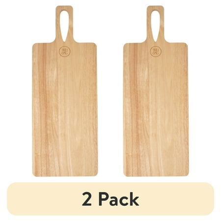 Better Homes & Gardens, Material is rubber Wood Cutting Board, Wooden Kitchen Chopping Boards for Meat, Cheese, Bread, Vegetables &Fruits, Knife Friendly Kitchen Butcher Block,53.3 x 20.3 x 1.5cm This chopping board can be used to chop up all varieties of foods such as bread, cheeses, meats, vegetables, fruits, and pizzas. This rubber wood cutting board comes with an ergonomic non-slip handle that makes it easy to hold the board while you’re putting the chopped ingredients in the cooking pot. This ensures that your countertops remain clean and uncluttered. Heavy-Duty Chopping Board, This cutting board for the kitchen is very thick and big enough to withstand large and heavy meats like a whole turkey for Thanksgiving, as well as stand up to the demands of everyday cooking in home and restaurants.